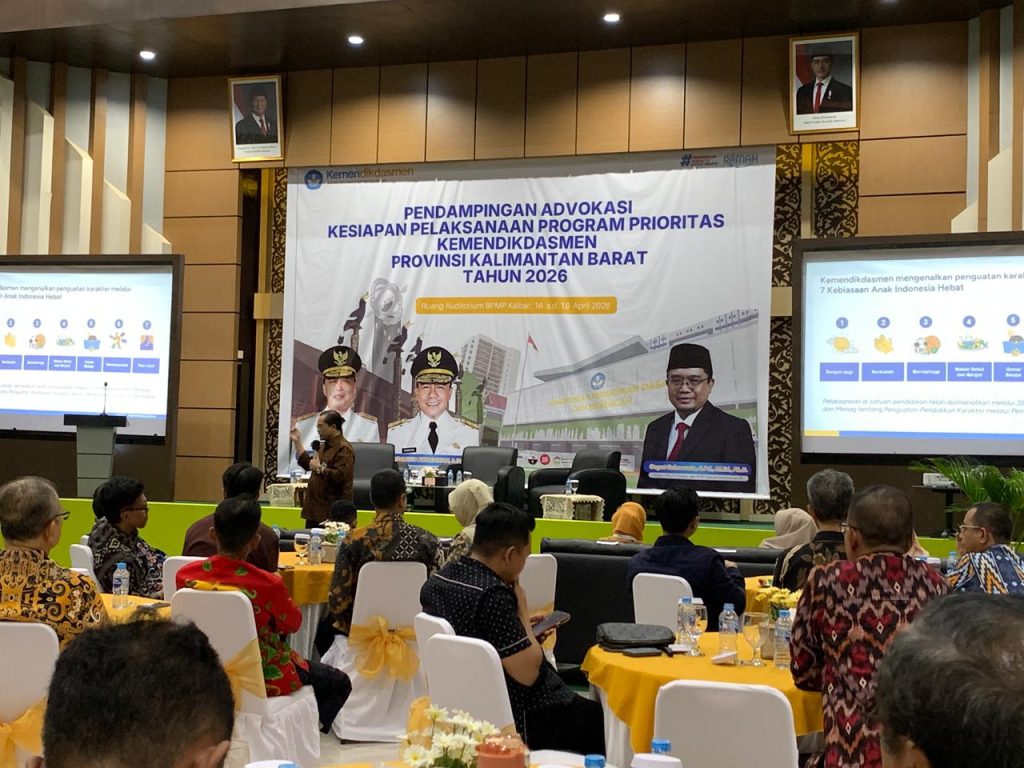 PONTIANAK – Kepala Dinas Komunikasi dan Informatika (Kominfo) Kabupaten Sambas, Riza Sunanda, S.T., M.T., M.Eng., menghadiri kegiatan Pendampingan Advokasi Kesiapan Pelaksanaan Program Prioritas Kementerian Pendidikan Dasar dan Menengah (Kemendikdasmen) Provinsi Kalimantan Barat. Kegiatan tersebut berlangsung selama tiga hari, mulai tanggal 16 hingga 18 April 2026, bertempat di Ruang Auditorium BPMP Provinsi Kalimantan Barat.